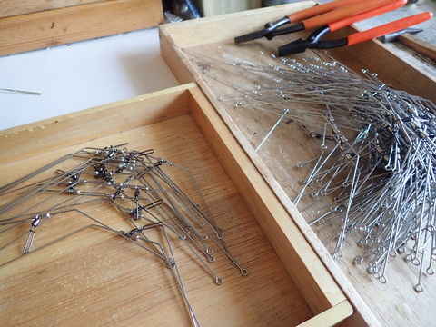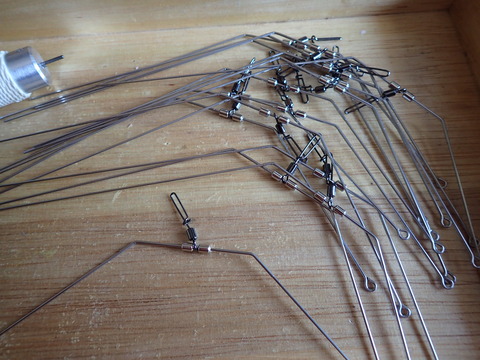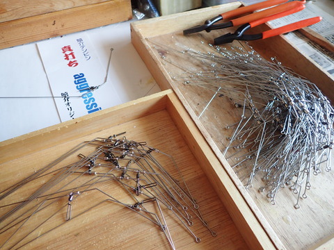 ・・・で、今回は100本ほど造っているが、今やっとそれらが終り、最終段階である仕掛け側の丸目(アイ)を造っている。これが終れば、後は丸目(アイ)の閉口をハンダすれば完成する。