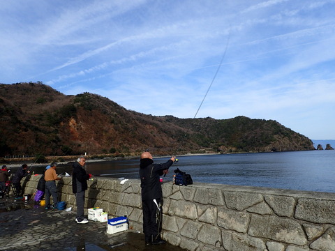 今回で2回目だが、きっかけは1月にこのイルカ浜小堤に釣行した時、キスはダメだったが、多くの方が「カマス」を浮き釣りやルアーなどで、大きなヤツをかなり釣っているのを見たこと・・に始まった。