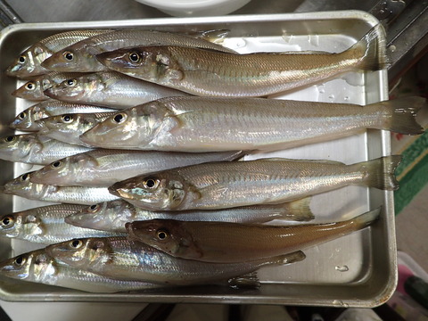 実は、今日も釣れた。2時間ほどだったが、釣り仲間から貰った獲物も合わせ17尾。25センチの大物も居ましたよ!!