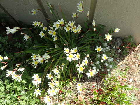 3年ほど前の今頃、南伊豆釣行時に松崎町のある食事処の庭に、珍しい黄色い花が群生し咲いているのを見つけた。小生にとって始めて見る花で、女将さんにお願いし数本の株を頂いて来た。・・・だが、名も育て方も分からず、やがては枯れてしまった。