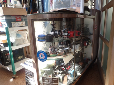 英男さん側の鏡の横には、昔懐かしいオリムピック製のスピニングリール、モデル93が2台置かれていた・・。