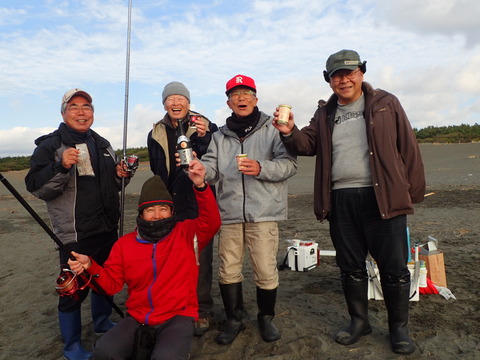 暮れに、新年会を午前7時過ぎから行うから集まれ!・・と、平塚海岸に屯する仲間の、チョン投げの鈴木誠之さん、海岸主の土井博明さんから伝達を受けていた。