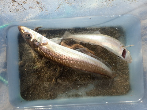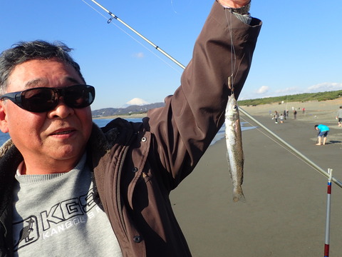 そんな中、遅れ来て竿を出していた佐藤英雄さんに、中っパが1尾、すぐ後に20センチオーバーのヒネが来たのである!!