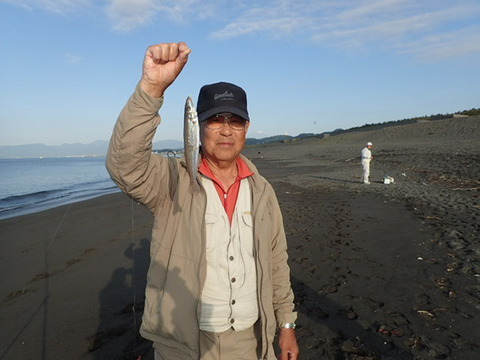 今日共にした和田春雄さん、早朝はダメだったが、南風がそよそよ吹き始めた10時頃から本領を発揮!! 場所を少し西に歩き居場所を見つけたと云う。・・・帰る最後の一投にも20センチを掛け、数は7尾と、連続してのヒットは見事だった!!