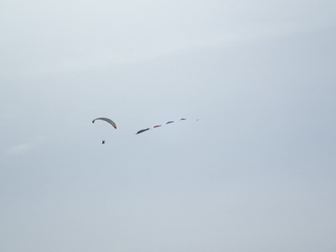 空に、パラグライダーが「鯉のぼり」をそよがせながら、のんびりと飛んでいた。