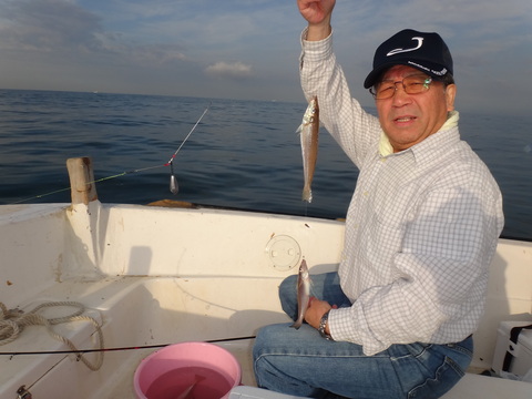 エサはこう付けて、小は一匹付け、大は二つに切ってチョンガケすればよい。船は潮に流すから投げなくてよい、下に仕掛けを落としゆっくり待てばよい。・・などなど釣り方の基本だけを教えておいた。