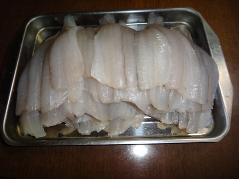 船宿から自宅までは、車で10分ほど。急ぐことも無く2時半頃には家に帰っていた。そして、これも久々に「昆布〆」にすべく出刃包丁を握ったのである。