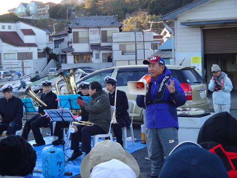 実はこの日、出港時と表彰式に、船宿の看板娘綾香さんが通う高校のブラスバンドのメンバー4人が、賑やかな演奏を奏でてくれ大会を盛り立ててくれたのである。