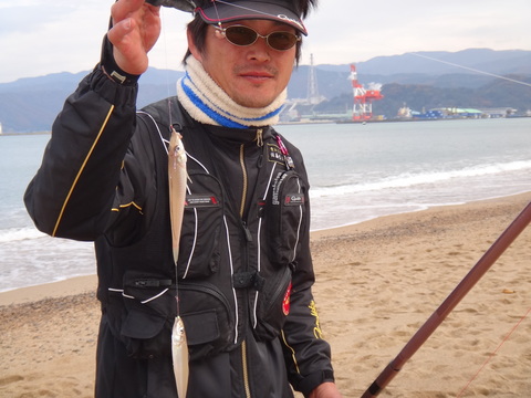 後半、少し離れた場所に遠投派の香林和幸さんや吉野海洋君らが盛んに遠投をかけていた。遠目に映った、慎重そうに巻き取る姿の中に、確かに複数連のキスが付いている。