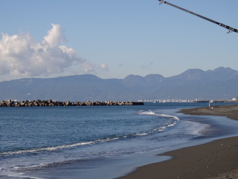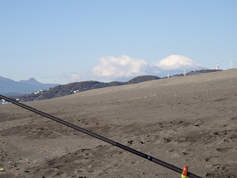 そんな中、グイ〜っと、かなり強烈なアタリが入ったのである。・・・最初に喰ったキスに、マゴチかヒラメが食い付いたか・?と思ったが、次のアタリで、これぞジャンボギスだ!と確認・・・。