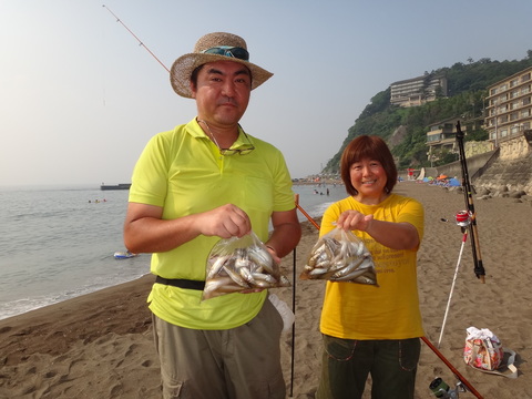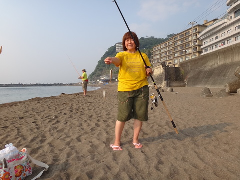 沢辺夫婦は最初から海水浴場中央より左側を攻めたが、一投目から連で喰い始め、夫婦で数釣りを競ったようだ!…最後の1時間、小生もここに合流し20数尾をモノにした。