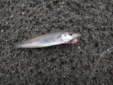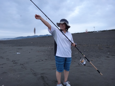 久し振りの「湘南銀ギス」!! ずっと低気圧の影響で荒れていた平塚海岸、昨日からウネリも治まり、水の色もやっと夏の海へと変わってきた。 現金なモノで、釣り場環境が整い、少しでも釣れた情報が伝われば、じっと我慢していた太公望がダッと押しかける。 情報を聞いてから出かけるのは小生の気質には合わないのだが、最近は他の用事に気を取られ竿を出すチャンスが無かった。そんなことで、今回はそうした有り難い情報を得て、勇んで繰り出した一人でもある。 午前5時、テトラ群東に行ってみた。既に、今日から始まる海水浴…