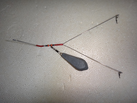 投げ釣り用を改良し、小型軽量にしてみた。1日使って、一度の仕掛け絡みも無かったし、アタリも楽しめた。難を言えば、バレが何回もあったことだ。・・ハリなのか、ハリスの太さか、長さか・・、やはりテンビンの構造なのか??