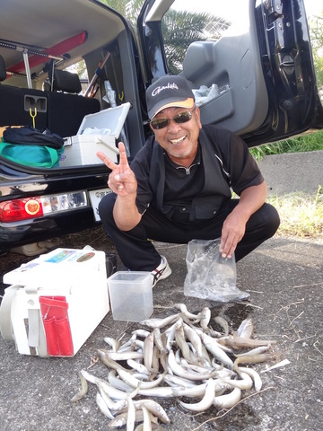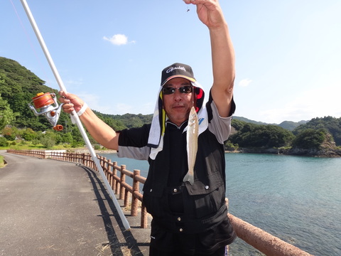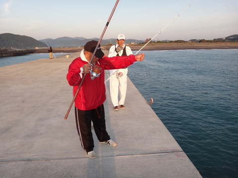 さらに高知方面に戻って、宇佐の萩ノ浜で遠投したが、山中幸一さんが27センチを、2日目の小生の第1投目に21センチがきた。この日は、いつも一緒してくれる仲間の中島淳さん、八木耕治さんも来てくれたが、残念ながらキスは居なかった。