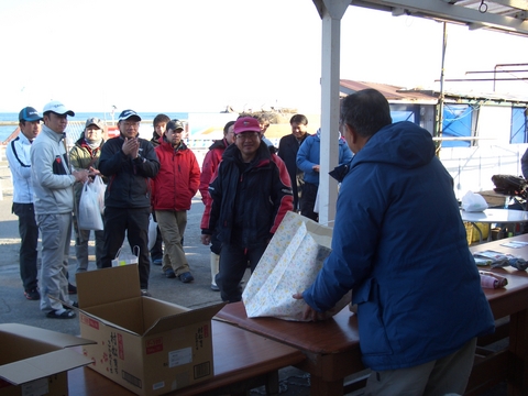 原因をさらに見ると、船宿から港まで車での移動があるものだから、受付終了後はバラバラに乗船してしまい、朝、一同を会しての諸事項の伝達等をしなかったという事務局側の落度もあったと思う。