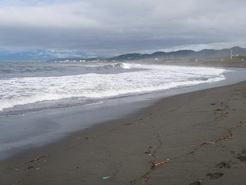一昨日来の雨が止み、一応、釣り支度をして、エサを洗おうと海岸に行ってきた。緩い南風でサオは出せるが、如何せん海岸一帯は大時化模様。・・とても竿を出せる状況には無かった。