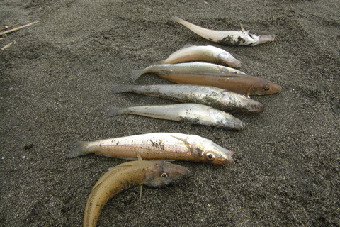 余談だが、このカルキ臭い魚はシロギスばかりではなさそう。昨年暮れに釣ったカワハギの中に同じ臭気を持ったものが居た。釣った場所が定置網周りだったから、?の説が有力とされたが、それはごく限られた時期的な現象であるから・・と、大きな議論にはならなかった・・。