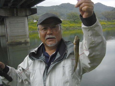 一方、久保さんの方と言えば、慣れた手つきでメバリング用のフニャフニャ竿を振り、中型多数と1尾だけだったが25センチ級の大物を楽しんでいた。曰く、こういうのが釣れなければ青野川に来た意味がない・・と。