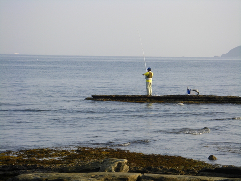 翌朝は、香谷(こうやつ)にある「民宿:本間」から直ぐ前の海水浴場に行ってみた。勝負終了は、8時30分の朝食時間までの約3時間・・。前日に23センチ前後を釣っている者もおり、全員がそれ以上を釣ろうと気が入っていた。