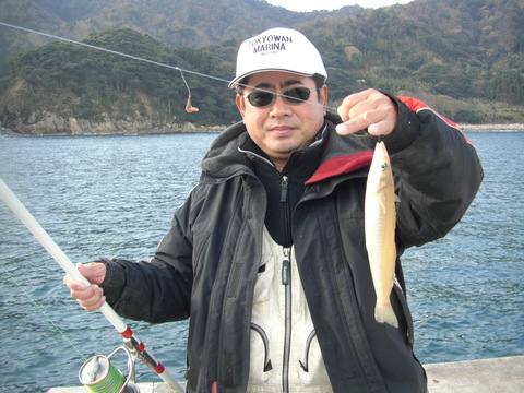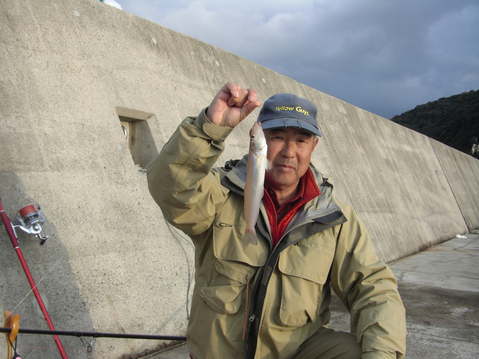 10時過ぎ、天の橋立に着く。先ずは、昨日と同じ江尻漁港近くの石積み突堤に行ってみた。だが、状況は変わり、北東の風が強く、遠くも近くも投げてみたがアタリは無い。やむなく場所を色々変えたのだが、小生には全くダメ。1箇所の突堤で粘った宇都木君に、24センチと21センチがきただけだった。