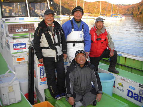 小春日和の中、8時出船。浅場を攻め、深場を攻めるが、昨日、大釣りがあったという割りには喰いが立たない。潮の流れがきつい為だとのこと。