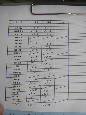 並んだ豪華賞品を成績順に勝手に選び、誰しもがニコニコ顔で手にする。・・・まるで少年時代に返ったような顔をして・・。 因みに、小生は8位となり、狙っていた賞品「特別蒸留・醸成40度の芋焼酎−霧島− 」を頂いてきた。・・釣りに続いて、晩酌で、又楽しめるのだ!!