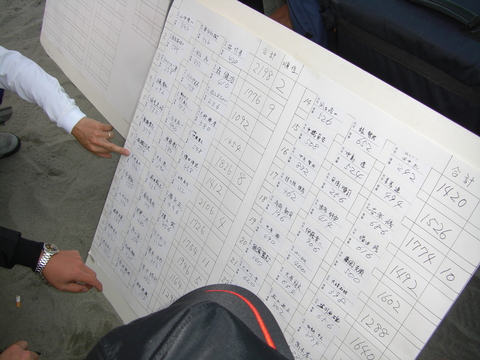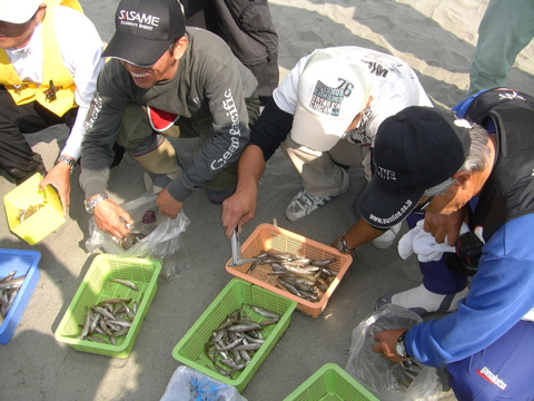・・やがて終了時間。本部にて検量が始まった。どうやら、この日は東側が良かったようだ。特に7番テトラ群の前あたりが良かったとのこと、そこで構えた連中の多くは沢山持っていた。