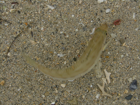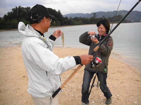 三日目は、この屋我地島に合田さんと3人できた。エサは、糸満の「みなと商店」という釣具店で買い占めてきた「島ミミズ」である。ここでは、そのエサをたっぷりとハリに付け、120メートルの遠投で狙うのである。