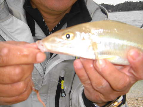 この日はそれこそ一日中、正に苦戦の中で過ごす。せめてもの慰めは、終了間際の一投に目指すホシギス(20センチ)が付いて来た。夕刻6時30分、暗くなりこの日を終える。