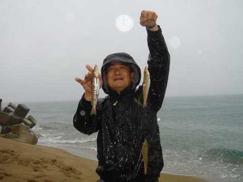 やがて戦いは終り、検量にはいる。・・大粒の雨の中、皆満足そうな顔をしていたのが印象的だった。主な結果は、大阪レインボーキャスターズの松尾さんが90尾で優勝。2位が89尾の柏崎サーフの岡本哲さん、3位が同じクラブの鈴木剛さんだった。