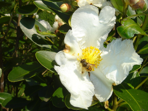 これも未だ珍しい部類にありそう。名を「タイワンツバキ」と言い、中国南部からインドシナ半島、台湾に分布すると言う。種は、ツバキ科タイワンツバキ属。木の丈は、5メートルにもなり、花は10月から2月にかけて咲く。葉が肉厚で濃いグリーン。花の白と葉色のコントラストが印象的である。