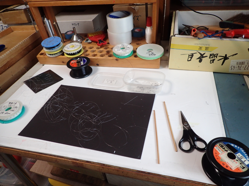 長いシーズンを終った今、使い切ってしまった「投げキス用の仕掛け」を造っている。以前は、必要とする多種多様の仕掛けを「一掛け」づつ造ったが、最近では全て「無限仕掛け」に切り替えた。ただ、無限にしたと言ってもハリの種類や大きさ、ハリスの太さや長さ、ミキイトの太さやエダス間隔、ビーズやオーロラ付きなど、細かく仕切ると、その量は結構増えてしまう。従って、最近は、これまでの長い経験から割り出した多様性のある「自分流の仕掛け」に絞って造っている。