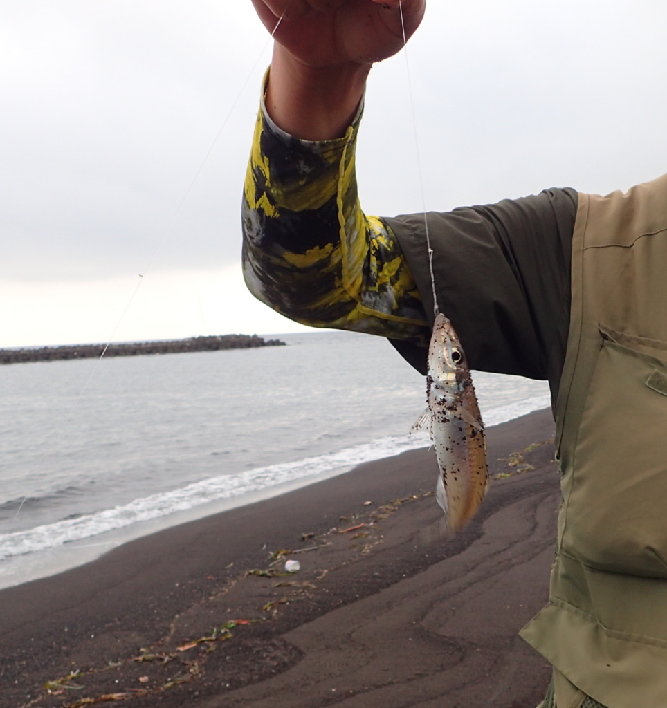 和田治夫さんの25?! 休日明けの今日、南伊豆の岩地海岸に中型キスを求めていってみた。先先週、先週と波口で中型のキスが釣れていたことから、早朝の一時を狙って行ってみたのである。 残念ながら数日前に漁師船が網を入れ、根こそぎ漁っていったそうで、この日、湾内には全く居ないようだった。 ただ、小生は、釣れない砂浜から左側の漁船係留場に行ったのだが、ここには居た。たった3尾ほどだったが20センチクラスが小気味よくサオを曲げてくれた。この日の道具は当然、超チョイ投げスタイルであった。 だが、場所は狭…